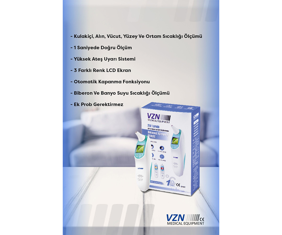 Vzn temassız ateş ölçer, hızlı ve hijyenik ölçüm imkanısunar. Özellikle çocuklar ve bebekler için güvenli kullanım sağlar. Temas gerektirmeden doğru sonuçlar verir.